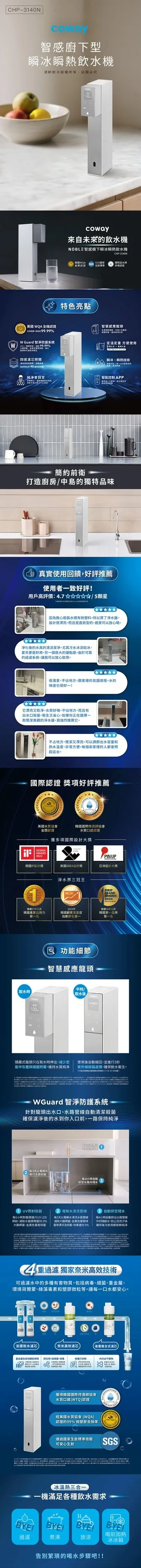 首頁 > 產品介紹 > 主機 > ●廚下飲水機 > 【歡迎尋問驚喜價】【Coway】NOBLE 智感櫥下型瞬冰瞬熱飲水機|CHP-3140N